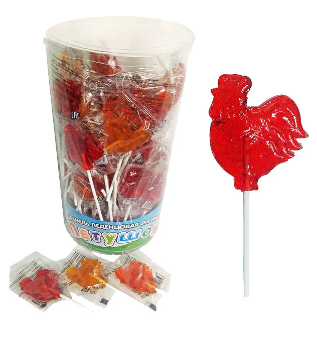 Самое любимое угощение из детства – Петушок на палочке. Леденцы в индивидуальной упаковке представлены в трех цветах – золотистом, оранжевом и красном...