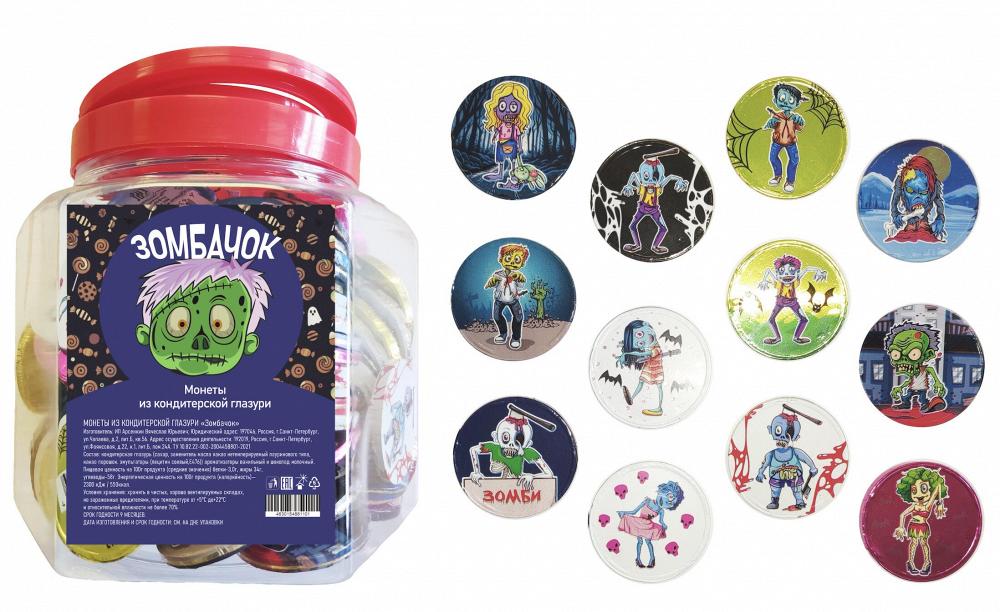 Сладкие монеты «Зомбачок» 6*150*7г в цветной фольге — отличный недорогой подарок для детей! Монеты изготовлены из качественной кондитерской глазури с...