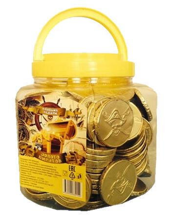 Сладкие монеты «Золото пиратов» в золотой фольге — отличный недорогой подарок для детей! Монеты изготовлены из качественной кондитерской глазури с выс...