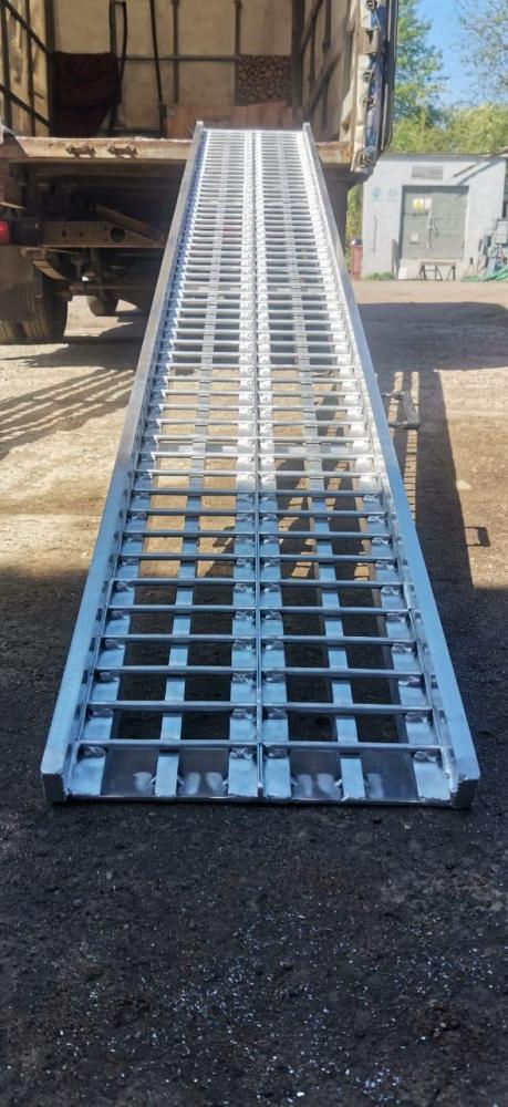 Аппарели для грузовиков и спецтехники на базе КАМАЗ Бортовые автомобили 15 тонн Грузоподъёмность 16000 кг/на пару Длина 3400 мм Ширина 400 мм Гарантия 12 месяцев Гарантия качества, цены в рублях, налиАппарели алюминиевые для заезда тяжелой техники до 50 тонн