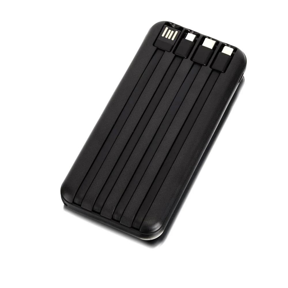 Три встроенных кабеля для зарядки современных устройств: Lightning, Micro-USB, Type-C. Если этого недостаточно, дополнительно есть два разъема USB. Можно зарядить и смартфон и, например, наушники.