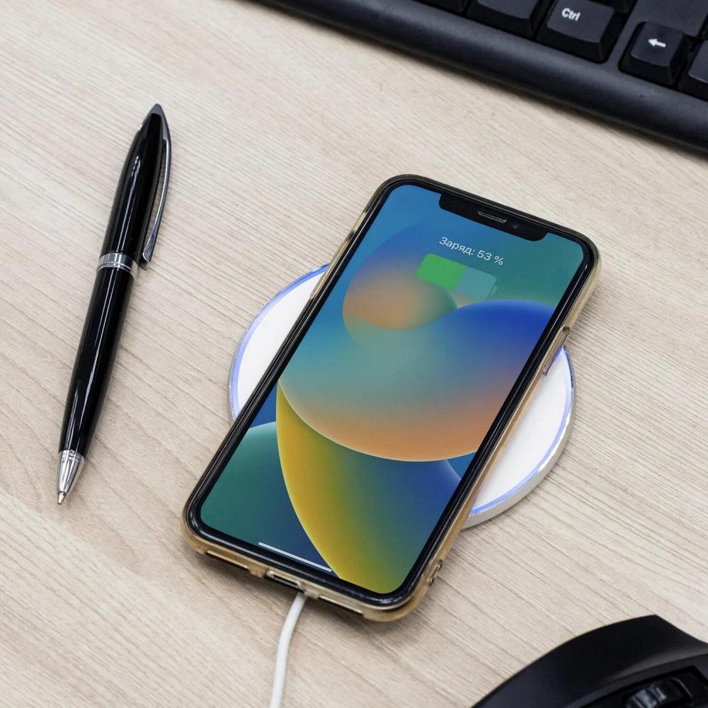 Зарядное устройство Pancake-charging (арт. PB-36/1) с подсветкой быстро и эффектно зарядит ваш смартфон. Подставка совместима с iPhone и другими телефонами с поддержкой беспроводной зарядки. Встроенна