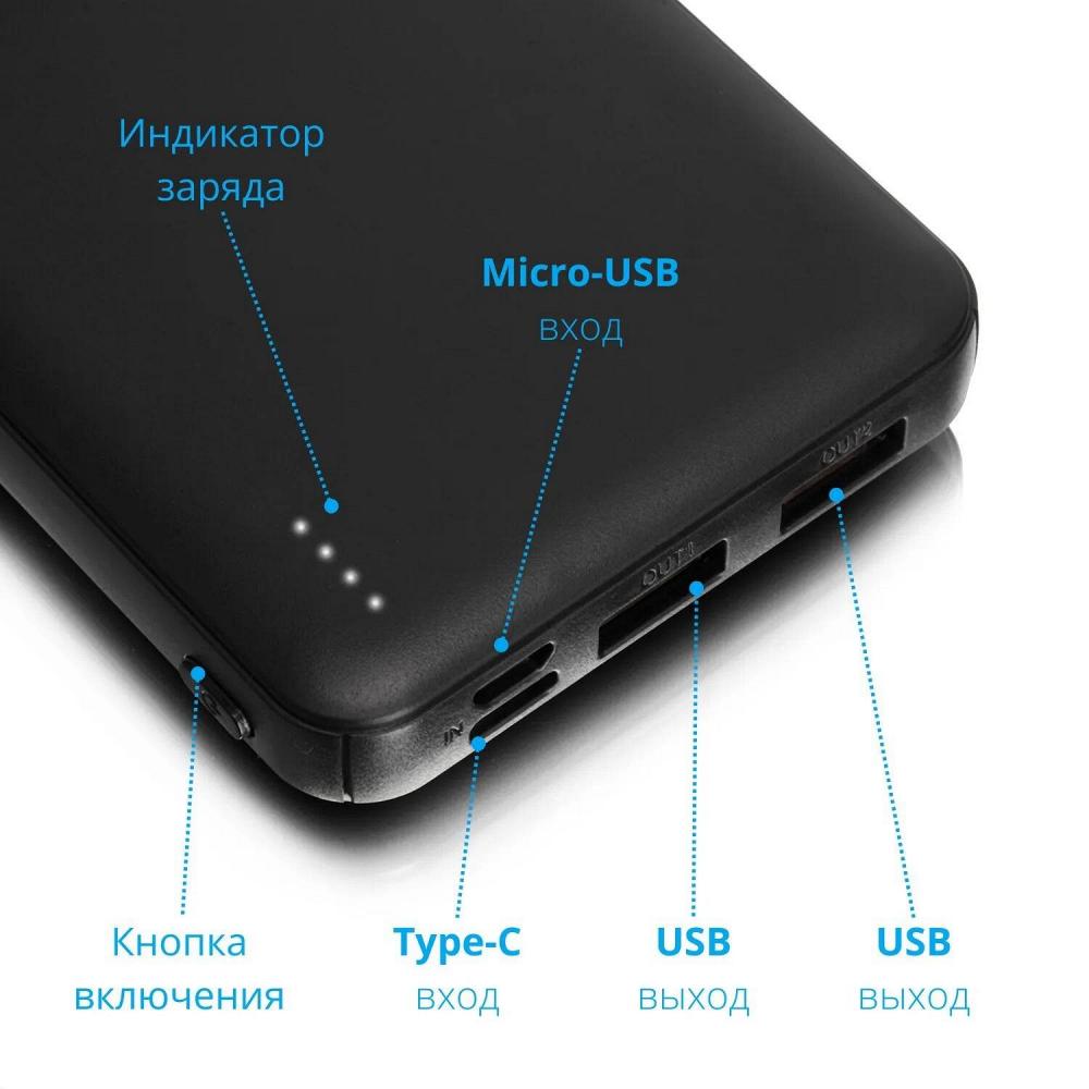 Ёмкость 10000 мАч позволяет с лёгкостью заряжать смартфоны, наушники и другие гаджеты, а наличие сразу двух USB-разъёмов делает его особенно удобным в поездке или в офисе.