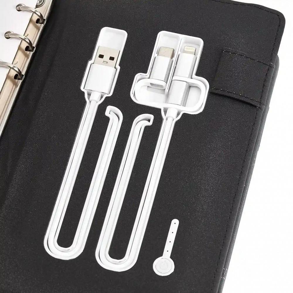На обратной стороне расположен внешний аккумулятор на 5000 mAh, способный зарядить большинство современных устройств. Все благодаря встроенным кабелю для зарядки micro-USB и адаптерам Type-C и Lightning. Кроме того, смарт-блокнот оснащен функцией беспроводной зарядки. А индикатор покажет уровень заряда батареи.