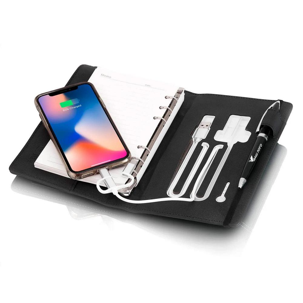 Умный ежедневник (арт. D2) включает в себя флешку объёмом 32 Гб, внешний аккумулятор мощностью 8000 mAh и ежедневник на разъёмных кольцах. Обложка ежедневника выполнена из высококачественной искусствеУмный ежедневник с зарядкой и флешкой Diary-smart