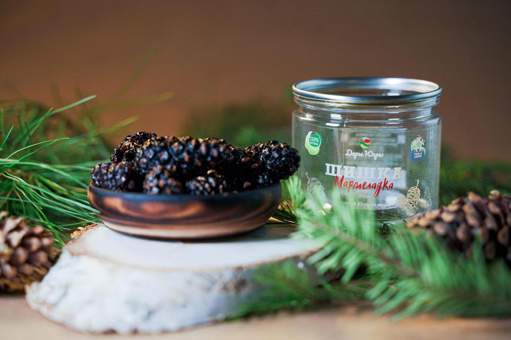 Вяленая сосновая шишка в сосновом сиропе \"Шишка мармеладка\" от компании \"Дары Югры\". Место сбора дикоросов Ханты-Мансийский автономный округ - Югра. Состав: молодая сосновая шишка, сахар. Лучшая продукция по органолептическим показателям (вкус, запах, структура). Без консервантов! Без красителей! Только натуральное сырье, собранное в экологически чистых лесах Сибири (ХМАО-ЮГРА).