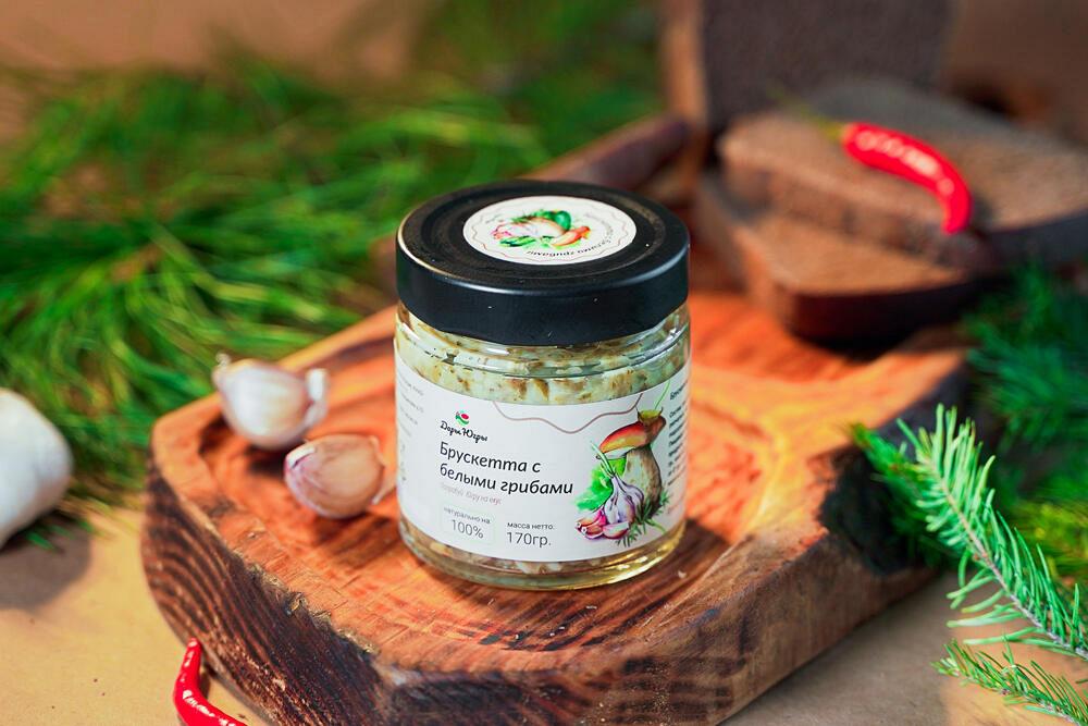 Брускетта с боровыми белыми грибами от компании \"Дары Югры\". Место сбора дикоросов Ханты-Мансийский автономный округ - Югра. Лучшая продукция по органолептическим показателям (вкус, запах, структура). Без консервантов! Без красителей! Только натуральное сырье, собранное в экологически чистых лесах Сибири (ХМАО-ЮГРА).