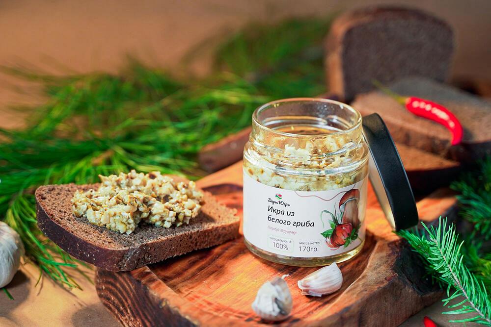 Икра из белого борового гриба от компании \"Дары Югры\". Место сбора дикоросов Ханты-Мансийский автономный округ - Югра. Лучшая продукция по органолептическим показателям (вкус, запах, структура). Без консервантов! Без красителей! Только натуральное сырье, собранное в экологически чистых лесах Сибири (ХМАО-ЮГРА).