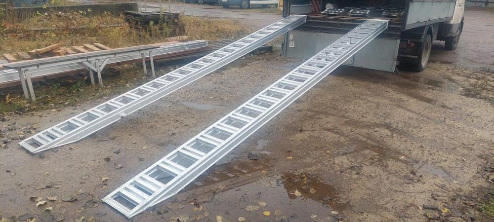 Аппарели алюминиевые ГКА 5.400.30.2/3 Грузоподъёмность до 500 кг/на пару Длина 4000 мм Ширина 300 мм Собственный вес 23 кг/шт. Гарантия 12 месяцев Доставка по всей России. Проектирование и изготовлениСходни для заезда ГКА 5.300.30.2 1