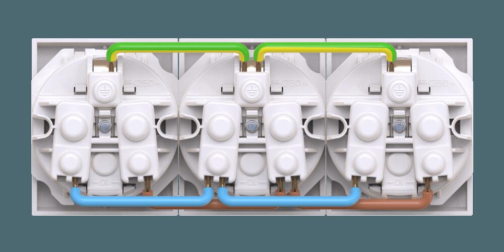 Розетка CADUCEUS ALING EXPERIENCE электрическая, трехместная, модульная, для скрытой проводки, механ