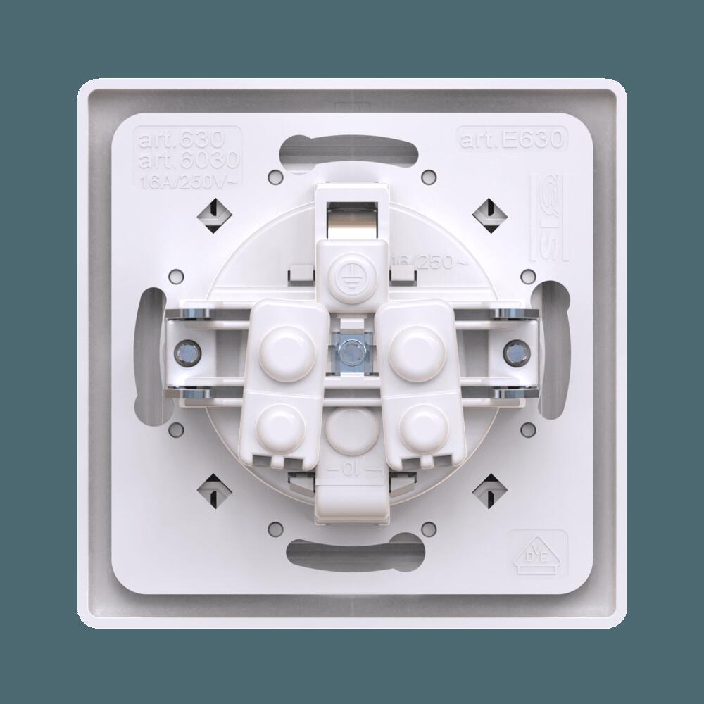 Артикул: E630 Характеристики: Серия: EON Материал лицевой панели: ABS-пластик Цвет для лицевой панели: белый, чёрный (soft touch), серебристый Материал основания: пластик Тип розетки: электрическая ТиМеханизм двойной встраиваемой розетки CADUCEUS ALING EON с заземлением, без шторок, с пластиковым ос