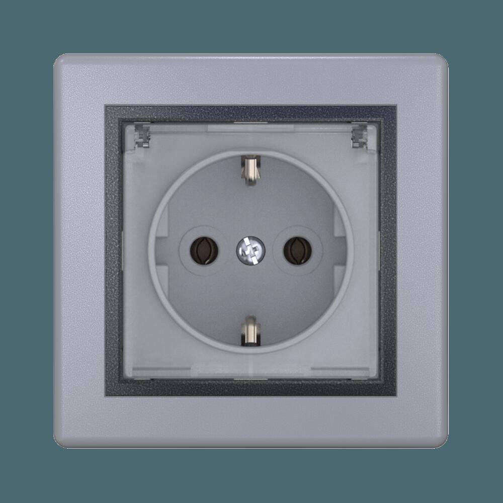Встраиваемая розетка CADUCEUS ALING PRESTIGE с заземлением, без шторок, с крышкой, с пластиковым осн