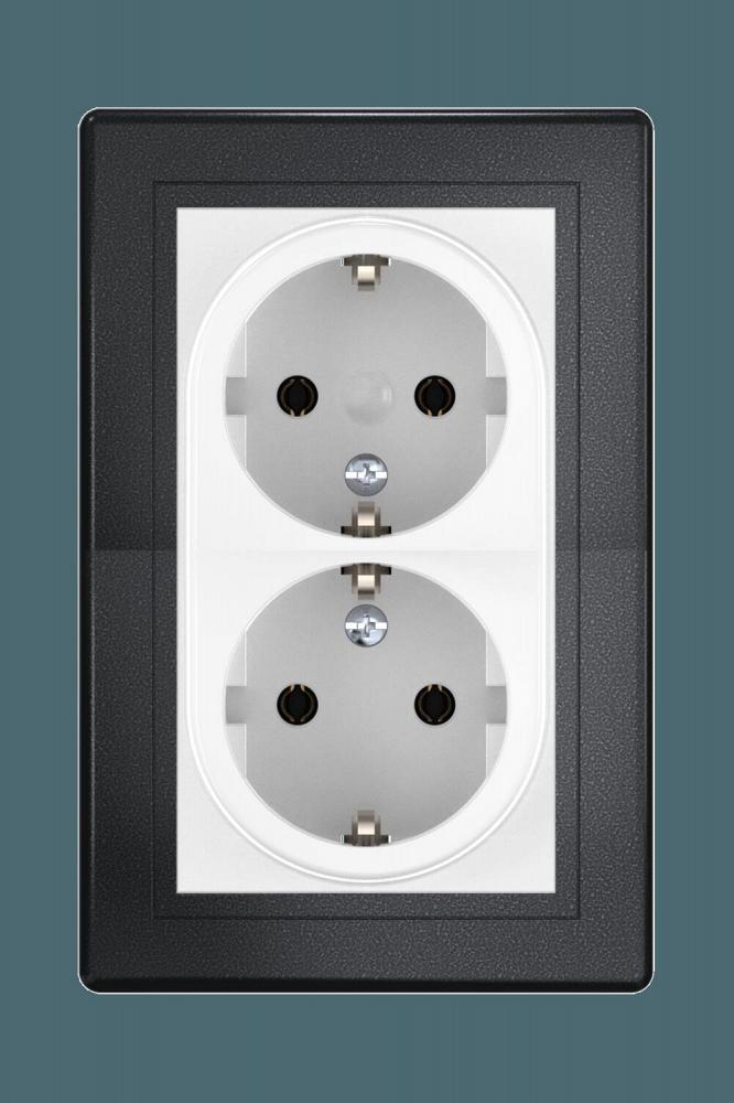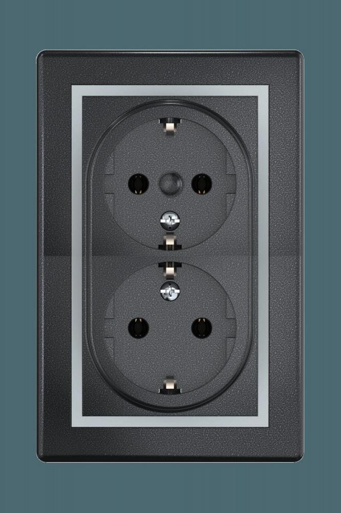 Розетка скрытой установки CADUCEUS ALING PRESTIGE, двойная, с заземлением, без шторок, с пластиковым