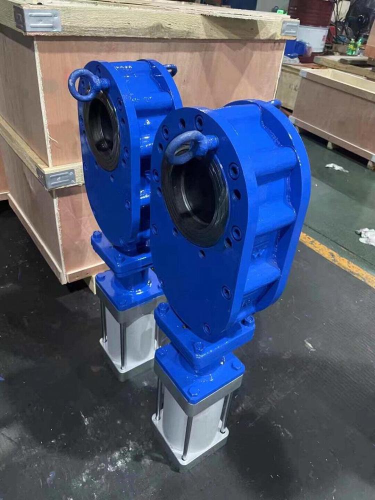 Задвижка двухдисковая межфланцевая с керамическим уплотнением с пневмоприводом
