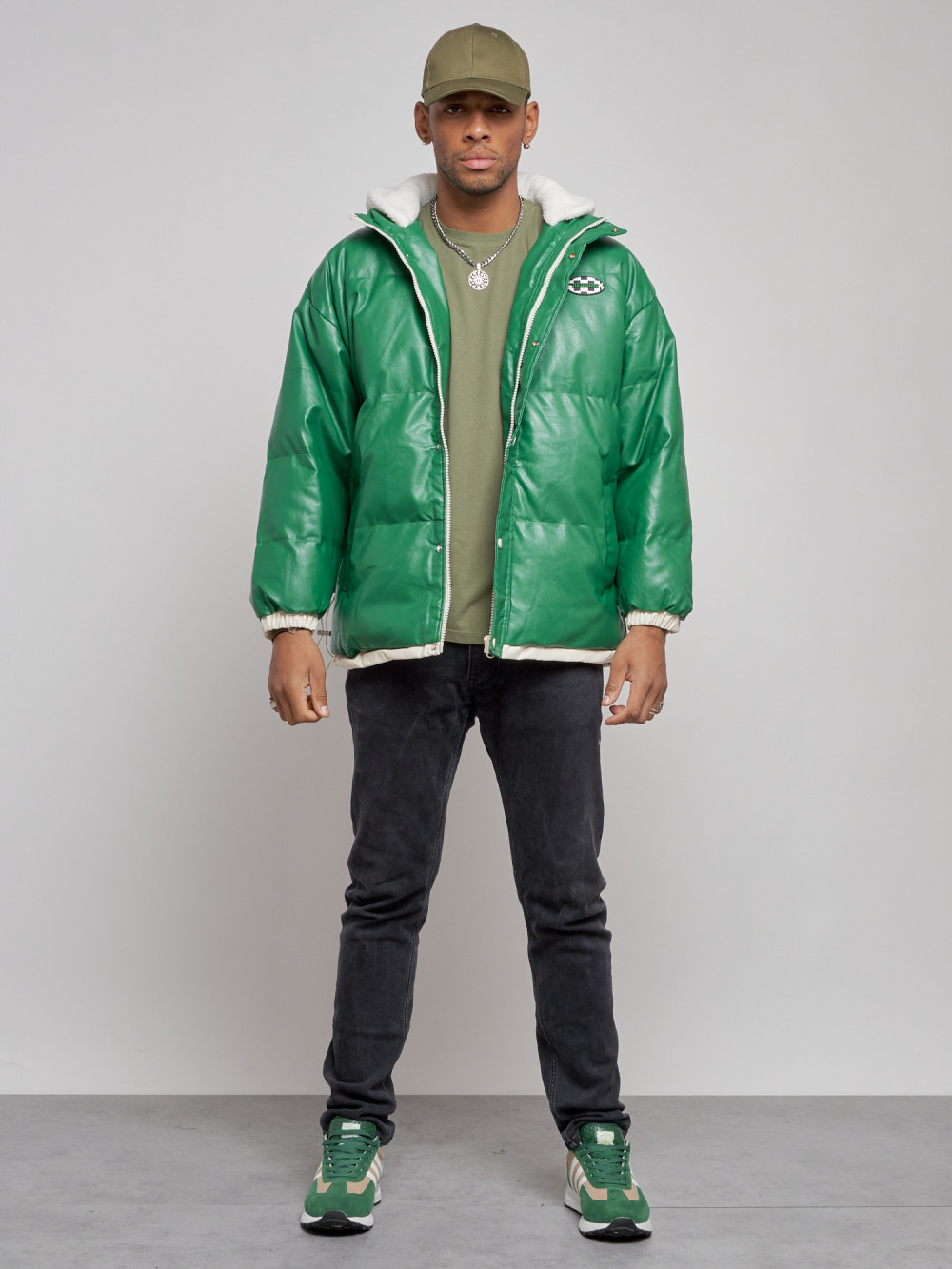 Куртка из экокожи мужская с плюшевым капюшон. Зимняя куртка, выполненная из искусственной кожи, идеально подойдет для прохладной погоды. Ее можно носи...