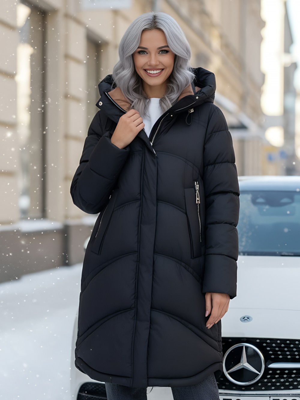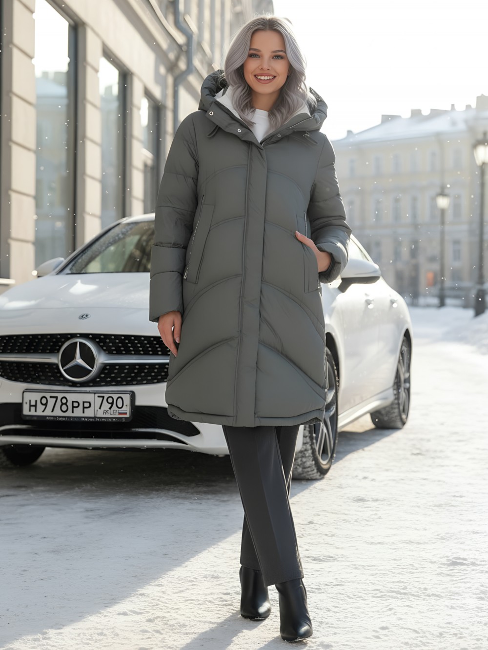 Зимнее утепленное женское пальто с капюшоном – идеальный выбор для холодного сезона! Доступно в размерах от 46 до 54, это пальто выполнено из высокока...